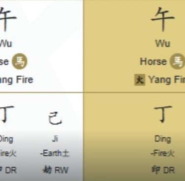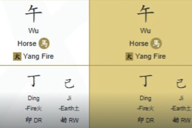 This year carries Wu energy, which amplifies her natal Wu + Wu pattern.